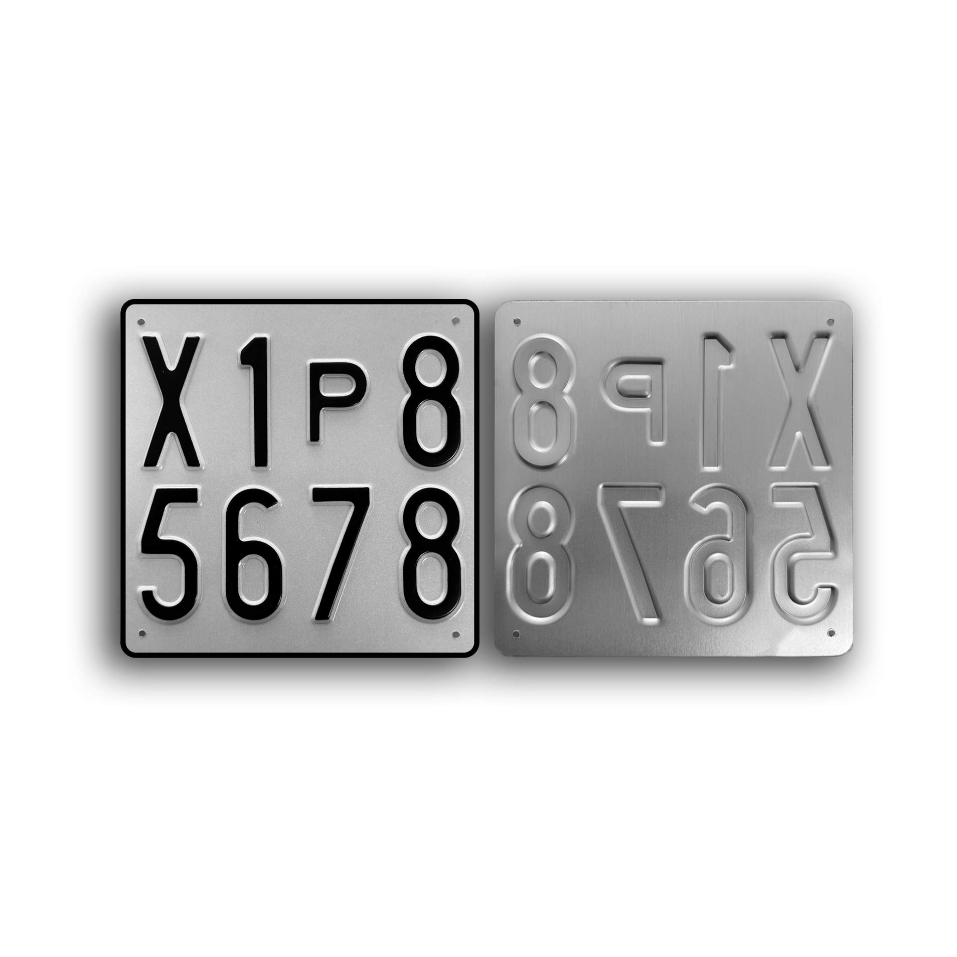 La targa viene prodotta con i caratteri a rilievo battuti sulla piastra.